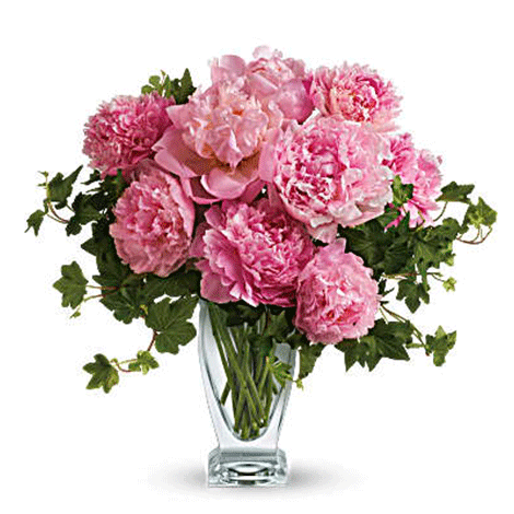 Lovely premium peonies with greenery. Includes a beautiful glass vase. Small:12 stems Medium:24 stems Large:48 stems