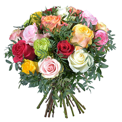 A mix of colorful roses embedded within greenery. Small:12 stems Medium:24 stems Large:48 stems