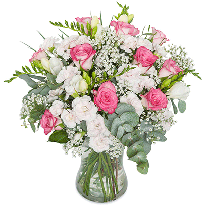 Simple bouquet in a vase compromised of roses and greenery