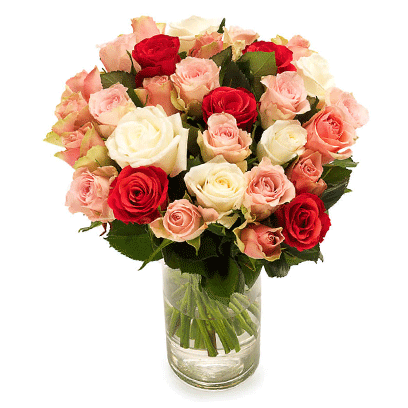 Reveal your romantic side with this delicate composition of white,pink and red roses. Small:12 stems Medium:24 stems Large:48 stems