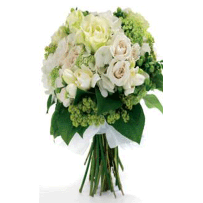 A stunning bouquet with peaceful colors . contains viburnum, hortensia, jacinthe, roses.. Just what you were looking for
