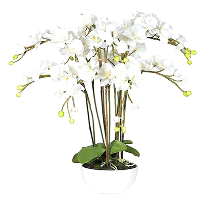 Around 10 stems of beautiful white orchids in one decorative pot