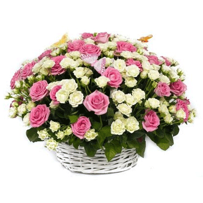 A combination of white baby rose and pink roses