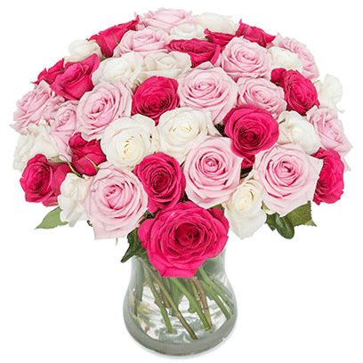 Palette of fuschia and pink roses for your precious one. Small:12 stems Medium:24 stems Large:48 stems