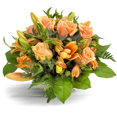 Soft peach bouquet made of roses and lilies