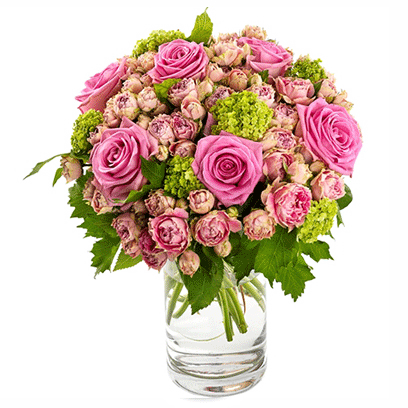 Tell your loved ones how beautiful they are with this pink roses & baby roses arrangement